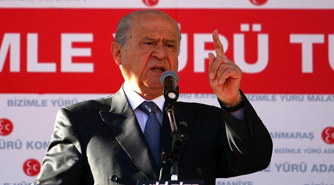 Konuşmaları sık sık partililerin ‘Devletin başına devlet gelecek’ sloganlarıyla kesilen Bahçeli Cumhurbaşkanı Recep Tayyip Erdoğan ile Başbakan Ahmet Davutoğlu’nu eleştirerek sözlerini şöyle tamamladı: