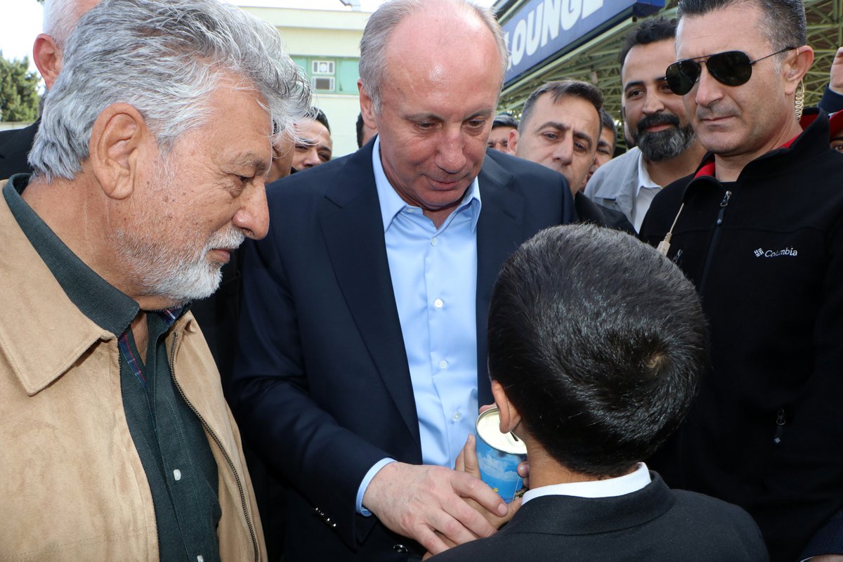 Kendisini bekleyenlerle sohbet eden İnce'nin yanına, seçim otobüsüne yürürken 9 yaşındaki Halil İbrahim Kandemir geldi. Kandemir, yanında getirdiği kumbarayı İnce'ye uzatarak seçim kampanyasına katkıda bulunmak istediğini söyledi.