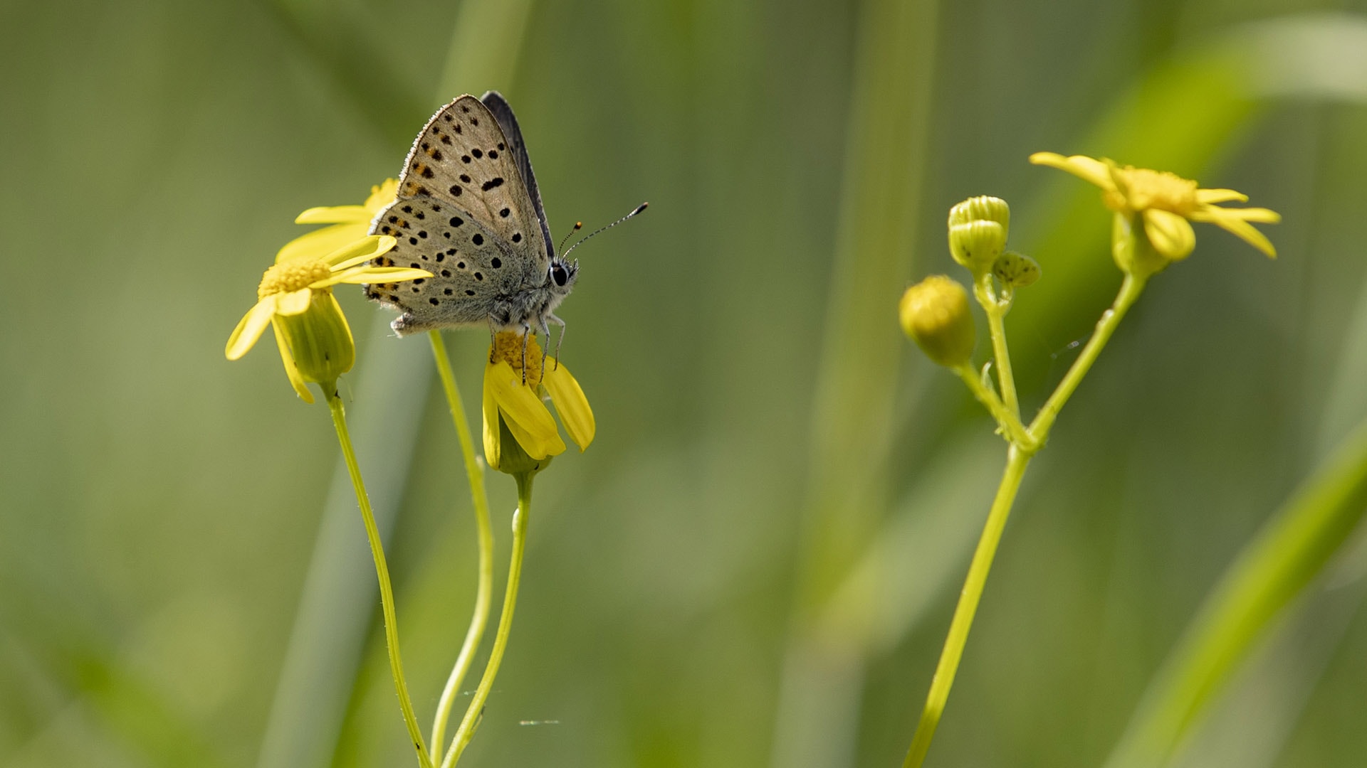 Milli parktaki bitkiler arasında uçuşan kelebekler, kanatlarındaki desen ve renklerle dikkat çekiyor.