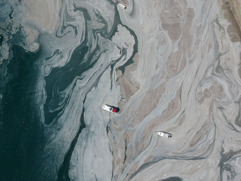 Deniz müsilajı olarak adlandırılan bulutlu çamur; balıkçıların ağlarını tıkıyor, deniz yaşamını tehdit ediyor, turistleri ve kıyı sakinlerini sümüksü ve pis kokusuyla uzaklaştırıyor. Kalın, yapışkan mukus katmanları, Türkiye kıyı şeridini aylarca mahvettiği gibi hâlâ da tehdit olmaya devam ediyor.