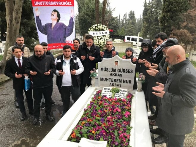 Müslün Gürses'in Zincirlikuyu'daki mezarında anma töreni saat 09.00'da başladı. Türkiye Musiki Eseri Sahipleri Meslek Birliği (MESAM) Başkanı Recep Ergül ve MESAM Üyeleri, sanatçının mezarına çiçekler bırakarak, dualar okudu. Anma etkinliğine, İcracı Sanatçılar ve Müzisyenler Meslek Birliği (TSMB) Başkanı Mustafa Demir, Müslüm Gürses'in orkestra üyeleri, yönetmen Ali Eşitmez de katıldı. "ÇAĞ DERVİŞİ GÖNÜL İNSANI" MESAM Başkanı Recep Ergül yaptığı açıklamada, "Müslüm Gürses, üstün yorumculuğu ile toplumumuzun her kesimine hitap etmeyi başarmış ve milyonlarca insanımızın gönül dünyasında yer etmiştir. Acılarla dolu ömrü boyunca kimseyi incitmemiş bir modern çağ dervişi ve gönül insanıdır. Saygıyla anıyorum" dedi. SÜRPRİZ ŞARKI MEZAR BAŞINDA SESLENDİRİLDİ Mezar başındaki anmada bir de sürpriz yaşandı. Sanatçı Özkan Can, Müslüm Gürses ile Muhterem Nur'un aşkını konu eden şarkısını ilk kez burada seslendirdi. Can'ın şarkısı, anma programına katılanlara duygulu anlar yaşattı.