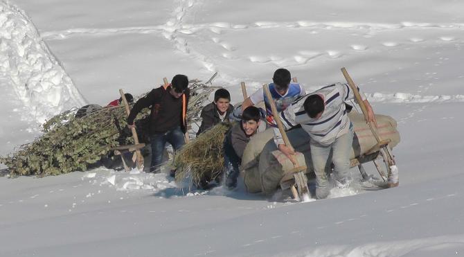Değirmitaşı Köyü Muhtarı Cevdet Taşdemir, yazın ovada biçip biriktirdikleri otları, kışın şartlarında hayvanlarına zorlukla ulaştırdıklarını söyledi. Taşdemir, "Köyümüzün geçim kaynağı hayvancılıktır. Köyde küçük ve büyükbaş hayvan yetiştiririz. Yazın köyümüzün çıkışına getirdiğimiz saman, ot ve çeperleri tahta kızaklarla herkes ahırına ya da hayvanlarını yemlediği yere taşır. Tabi bu taşıma kolay değildir. Kar ve soğuk anamızdan emdiğimiz sütü burnumuzdan getiriyor" dedi