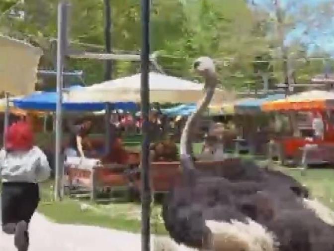Aksaray'da Kültür Park'taki bir işletmeci tarafından barınakta tutulan devekuşu, yerinden çıkıp, kafe bahçesindeki kadın müşteriyi kovaladı.
