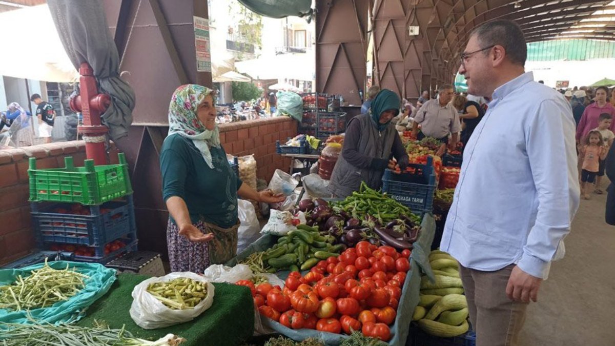 Aydın Çine’de pazar esnafı ile bir araya gelen CHP Aydın Milletvekili Evrim Karakoz, bir yıllık fiyatları karşılaştırıp liste çıkararak, hem üreticinin hem esnafın hem de vatandaşın yaşadığı tabloyu ortaya çıkardı. Bir yılda yaşanan fiyat artışının çok yüksek boyutlarda olduğunu vurgulayan Karakoz, “Zamlardan, vergi artışlarından ve pahalılıktan pazarcı esnafı da vatandaş da bıktı” dedi. Bu tablo karşısında üreticinin üretmekten, pazarcının tezgah açmaktan vazgeçme noktasına geldiğini anlatan Karakoz, “Vatandaş da 1 kilogram domates, 2 maydanoz almak için en ucuzu nerede diye bütün tezgahları geziyor ama ucuzu yok. Sebze, meyve ve temel gıdada yaşanan artışlar, ülkenin her bir kentinde, kasabasında, köyünde yaşam mücadelesi veren dar gelirliyi vurdu. Vatandaş artık sebze ve meyveyi taneyle alıyor. Artan vergi, harç, zamlar ve hayat pahalılığı ülkeyi kasıp kavuruyor. Vatandaştan toplanan vergiler, saraya ve avanelerine harcanıyor” ifadelerini kullandı.