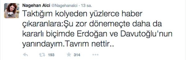 Milliyet gazetesi yazarı Nagehan Alçı, programda taktığı Kürt folklorik renkleri olan kırmızı, sarı ve yeşil renkteki kolyenin 'bir mesaj içerdiğine' atıfta bulunanlara, 'Taktığım kolyeden yüzlerce haber çıkaranlara:Şu zor dönemeçte daha da kararlı biçimde Erdoğan ve Davutoğlu'nun yanındayım.Tavrım nettir..' yanıtını verdi.