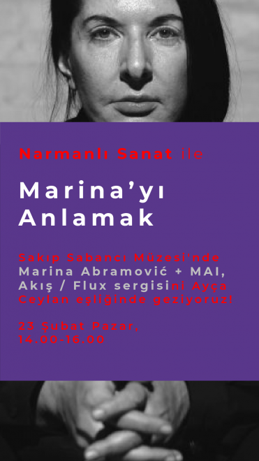 İstanbul’un kalbinde sanat dünyasını hareketlendiren bir mekana dönüşen Narmanlı Sanat, bu kez kendi alanından çıkıyor ve katılmak isteyenlerle birlikte Sakıp Sabancı Müzesi’ndeki Marina Abramović + MAI, Akış / Flux sergisini geziyor.