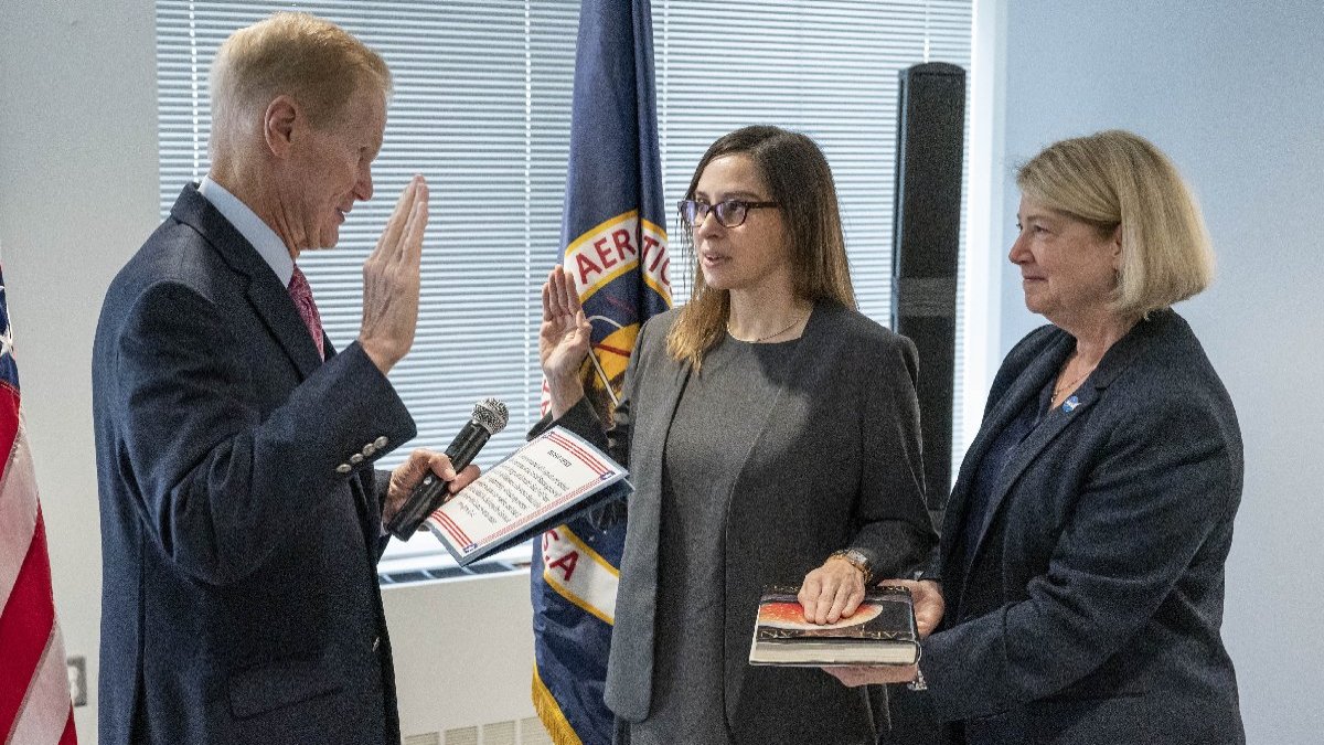 NASA'nın yeni yöneticisi, Carl Sagan'ın 'Soluk Mavi Nokta' isimli kitabına el basarak yemin etti ve görevi teslim aldı. Dr. Makenzie Lystrup, Dünya'nın uzaydan çekilmiş 1990 tarihli bir fotoğrafından ilham alan ikonik kitabı seçti.