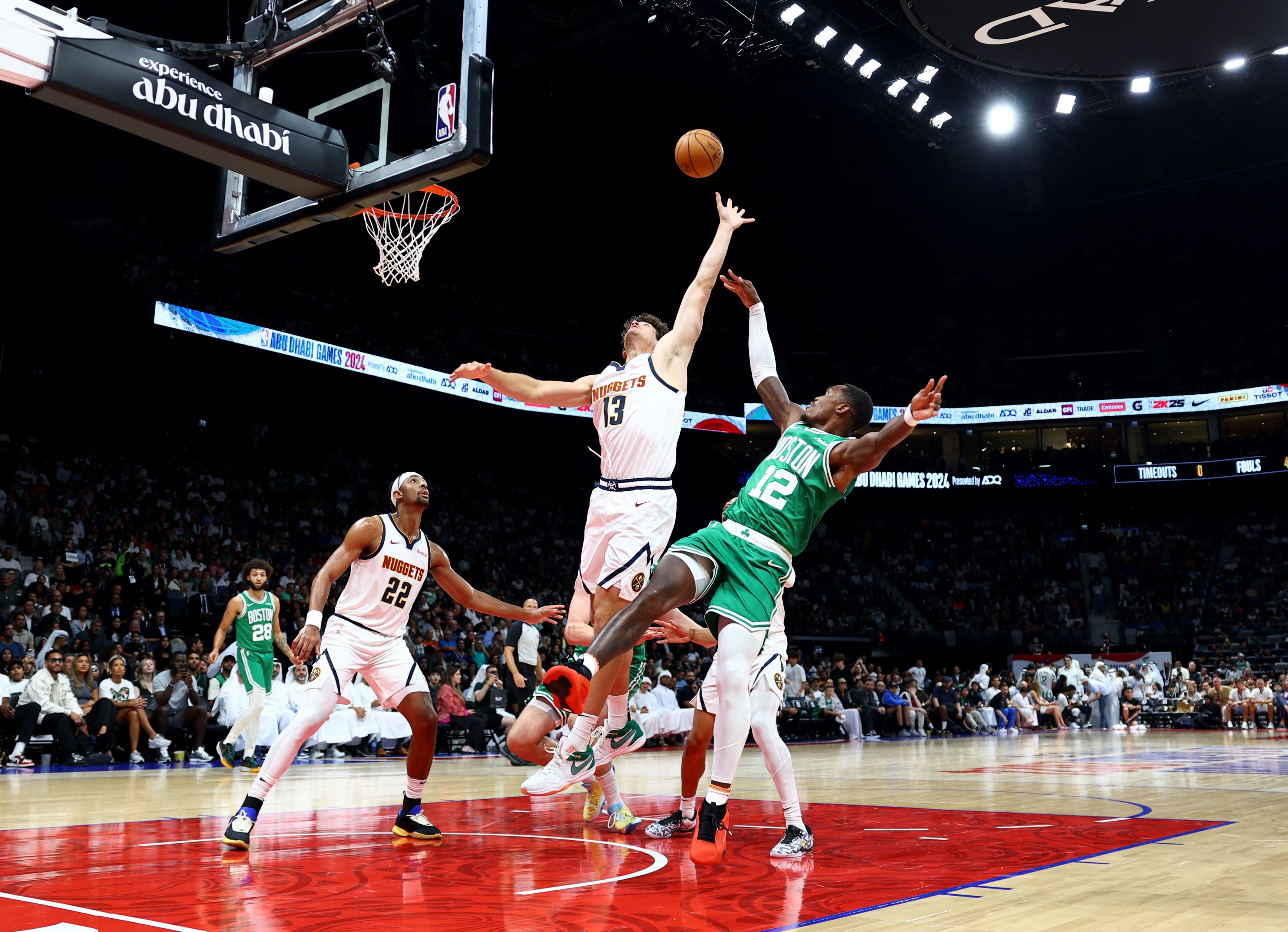 Amerikan Basketbol Ligi’nin (NBA) son şampiyonu Boston Celtics ile bir önceki sezonun şampiyonu Denver Nuggets, yeni sezon öncesi hazırlık karşılaşmaları kapsamında Birleşik Arap Emirlikleri’nin başkenti Abu Dabi’deki Etihad Arena’da kozlarını paylaştı.