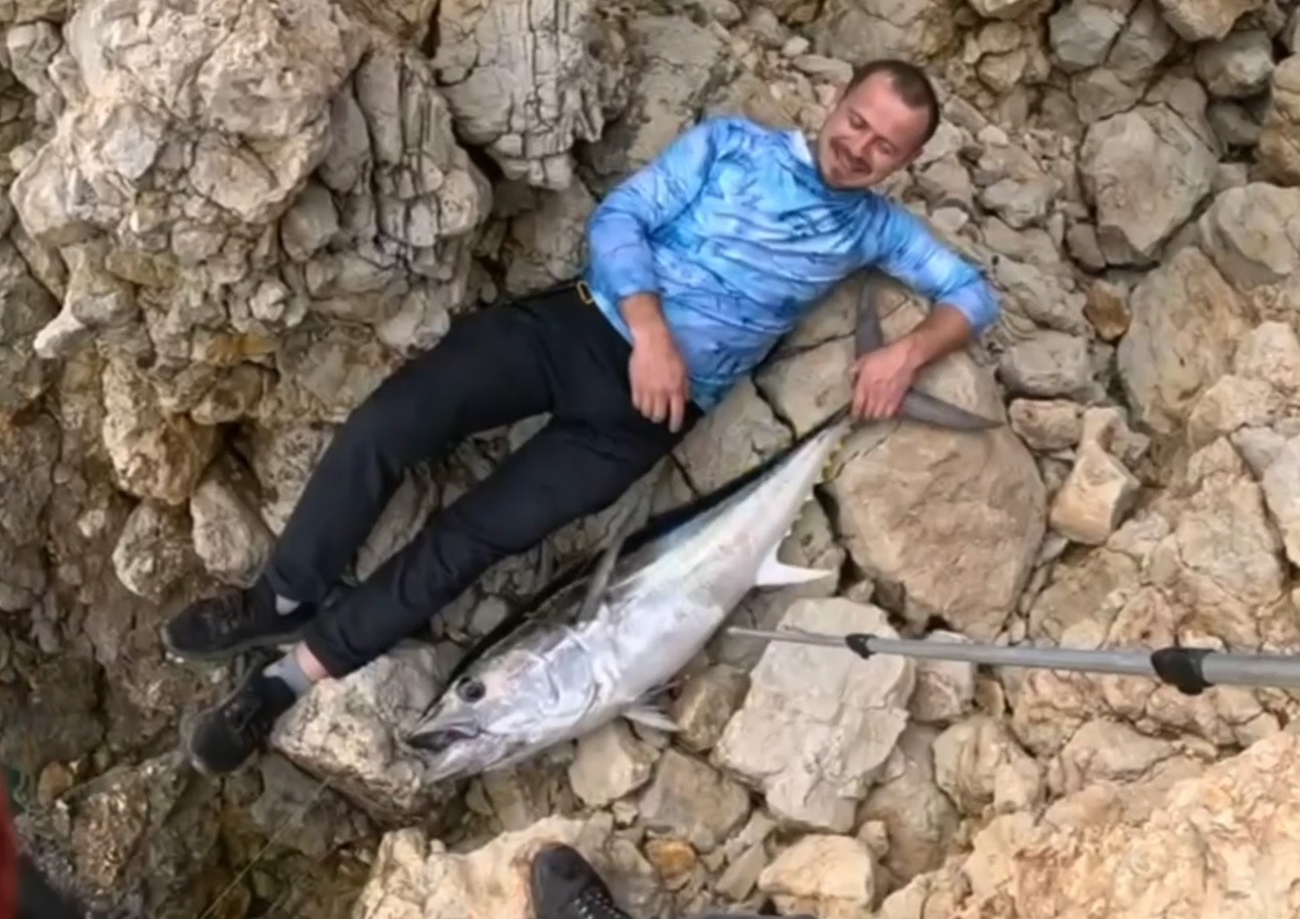 Sonrasında büyük olduğunu belli etti ve mücadele başladı. Yaklaşık 20 dakikalık mücadele sonunda galip gelen taraf ben oldum. Orkinos kıyıya geldi ve kıyı rekorumu 30 kilo ağırlığında ve 130 santimetre uzunluğunda orkinosla kırdım. Peşinde olan herkese rastgele” dedi.