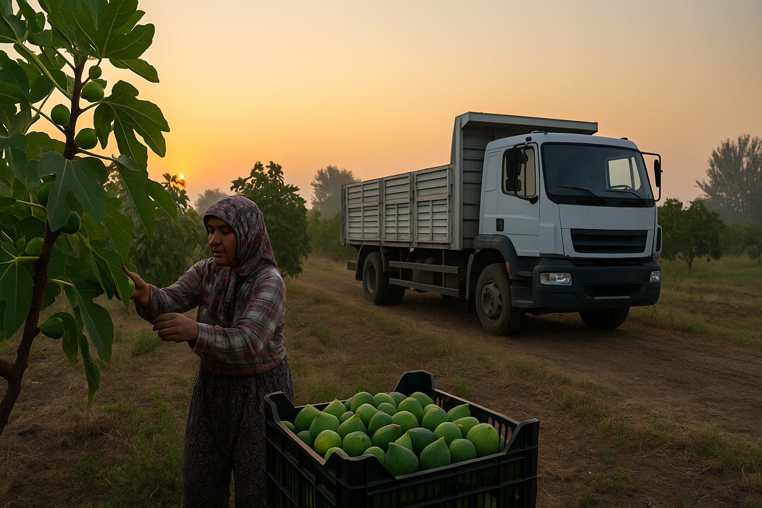 Hava sıcaklıklarının mevsim normallerinin üzerinde seyrettiği ilçede sabahın erken saatlerinde hasat için bahçelere giden üreticiler, saat 09.00'a kadar incir topluyor.