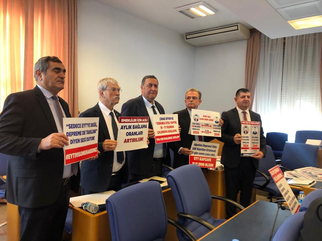 Görüşmeler öncesi açtıkları dövizlerle EYT’nin eksik kalan bölümlerini eleştiren muhalefet milletvekilleri özellikle Bağ-Kurlularla çırak ve stajyerlerin mağduriyetine dikkat çekerlerken en düşük emekli aylığının da 8 bin 500 TL’ye çıkarılmasını talep ettiler.