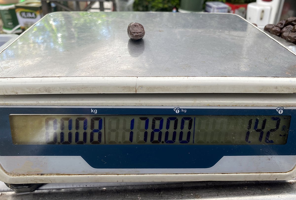 Fotoğraf: SÖZCÜDün İstanbul Anadolu Yakası'ndaki bir halk pazarında kurulan zeytin tezgahında kilosu 178 lira olan zeytinin bir adedini teraziye koyduk. 8 gram gelen zeytinin fiyatı 1 lira 42 kuruş tuttu. Beş yıl önce 1 lira 25 kuruşa 200 gram ekmek alınan Türkiye'de bugün 8 gram ağırlığında 1 tane zeytin bile alınamıyor.