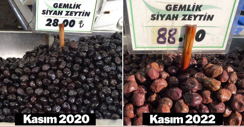 Aynı zeytinin kilogram fiyatı Kasım 2020'de 28 lira, Kasım 2022'de 88 liraydı... Son 10 ayda zeytinin fiyatı yüzde 100'den fazla arttı ve 178 liraya çıktı.