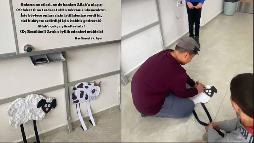 Isparta’da bulunan Yaka Şehit Mustafa Baş Ortaokulu’nda ‘Kurban ibadeti’ni anlatmak için skandal bir uygulamaya imza atıldı. Hayvan sevgisinin öğretilmesi gereken yaştaki çocuklara kurban kesme öğretildi. Birgün’ün haberine göre öğrencilere önce kurban pazarlığı yaptırıldı. Bunun ardından maketten yapılan küçükbaş hayvanların kesilmesi gösterildi. Bu sırada eline gerçek bıçak verilen bir öğrenci hayvanı kesiyormuş gibi yaptı. Diğer öğrenciler ise bu sırada dua okudu.