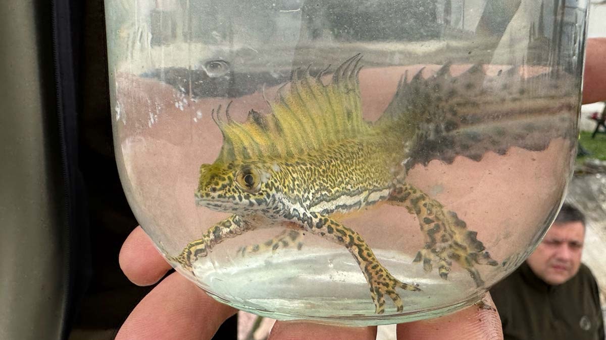 Durumun bildirildiği Doğa Koruma ve Milli Parklar Bölge Müdürlüğü ekipleri, havuzda süs kayalarının altındaki ve sudaki semenderleri ağ yardımıyla yakalayarak kavanozda inceledi.