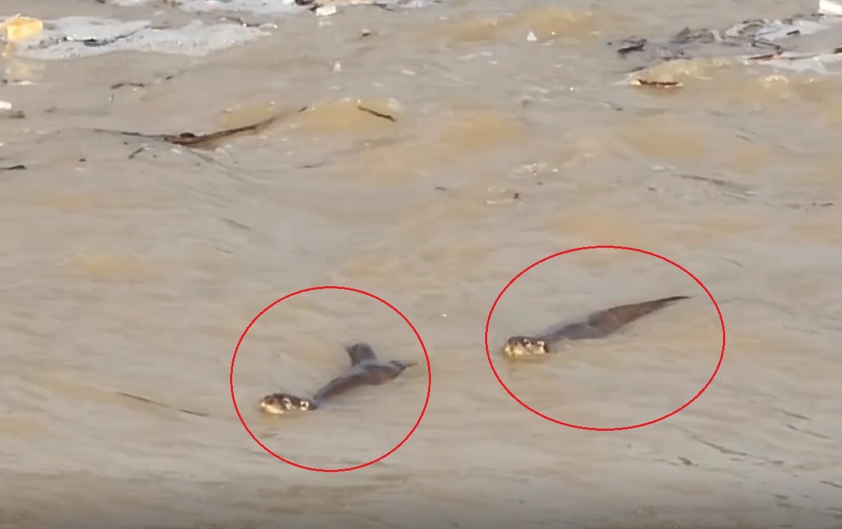 Hükümet Konağı'nın bulunduğu alanda dolaşan bölge halkı, derede su samurlarının yüzdüğünü fark etti. Derenin kenarındaki kayalık alana çıkıp tekrar suya dalan su samurları, çevredekilerin cep telefonu kamerasıyla görüntülendi.