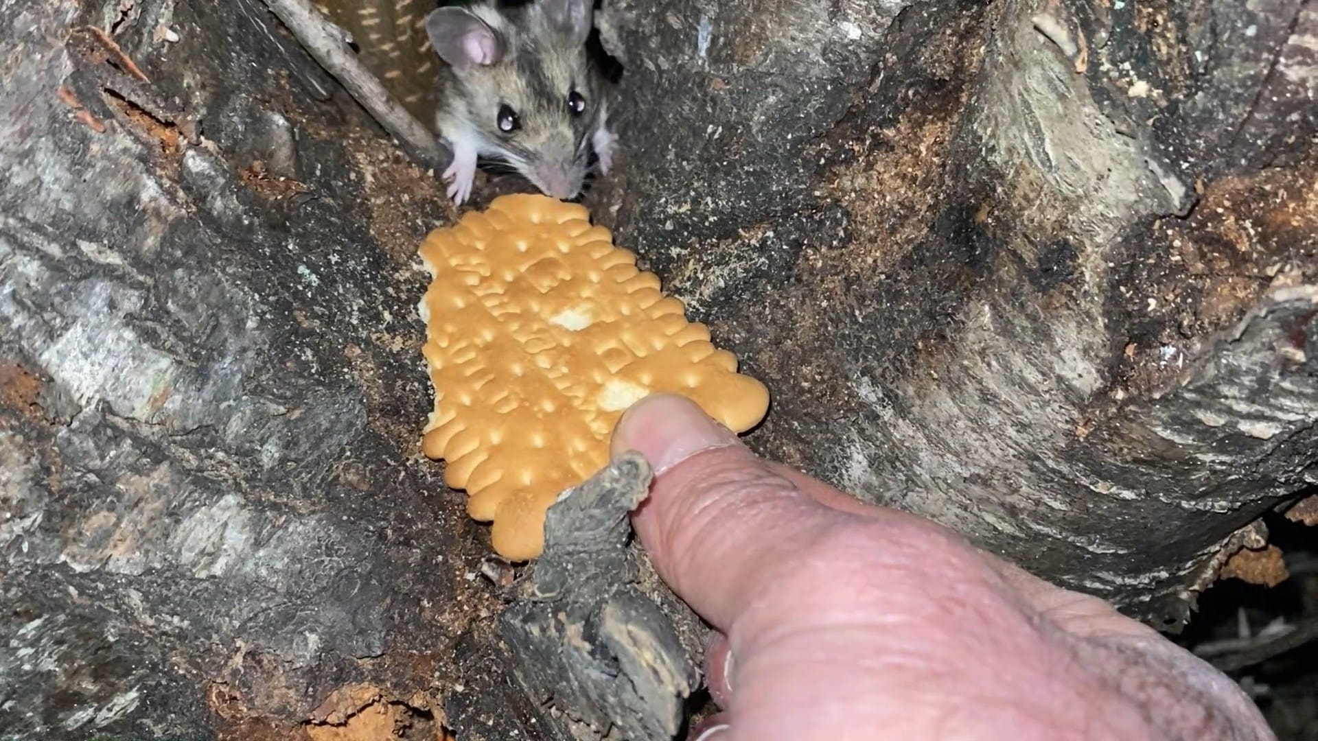 Oral, fareye lokumlu bisküvi vererek besledi ve bu anları cep telefonu kamerasıyla kaydetti. Görüntülerde, Anadolu dikenli faresinin bisküviyi yediği anlar yer aldı.