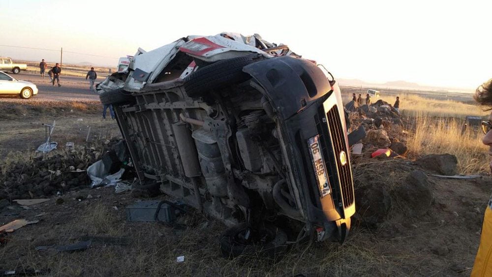 FOTO:DHA Kazadan yara almadan kurtulan tiyatro ekibinin diğer üyeleri olayın şokunu uzun süre üzerlerinden atamadılar.Kaza nedeniyle Nevşehir Kapadokya Kültür Merkezinde bugün yapılacak olan 'Son Kale Türkiye' gösterisi de iptal edildi. (DHA)