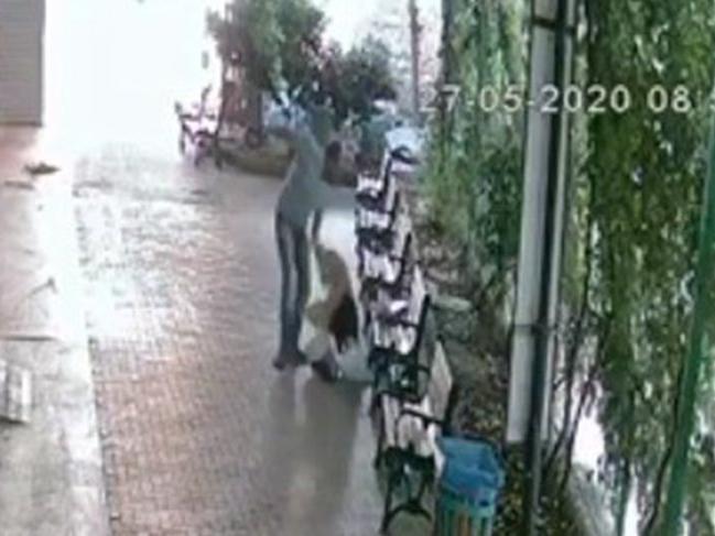 O anlar bir iş yerine ait güvenlik kamerasına saniye saniye yansıdı. Yaralı kadın hastaneye kaldırıldı.