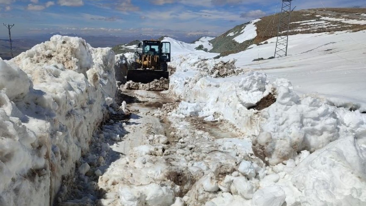 Van'ın Saray ilçesinde, kış boyunca biriken kar kütleleri temizlenirken, bazı noktalarda 3 metreyi bulan karlı yollarda çalışma yapılıyor.