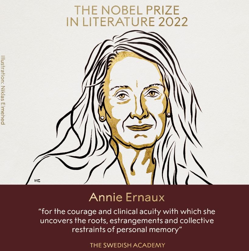 Dünyanın hem en prestijli hem de en tartışmaya açık ödüllerinden biri olan Nobel Ödülleri bu yıl sahiplerini buluyor... Tıp, Fizik ve Kimya kategorilerinde Nobel ödülleri sahiplerini bulurken bugün de Nobel Edebiyat Ödülü'nü kazanan isim açıklandı. Ödül Fransız yazar Annie Ernaux'ya verildi. Komite tarafından yapılan açıklamada, "Ernaux'ya Nobel Edebiyat Ödülü, kişisel hafızanın kökleri, kolektif baskılanması ve yabancılaşması konusunda gösterdiği cesaret ve klinik duyarlılık konusundaki çalışmaları sebebiyle layık  görüldü" denildi. Türkçe diline çevrilmiş Yalın Tutku, Babamın Yeri, Boş Dolaplar ve Seneler isimli kitapları bulunuyor.