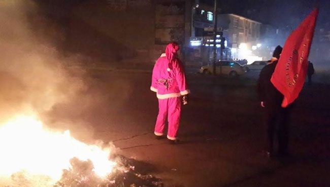 Çöp konteynerleri ve kaldırım taşlarıyla yola barikat kuran göstericiler, barikatı ateşe verdi. Polis, göstericilere TOMA'dan sıkılan tazyikli su ve gaz bombasıyla müdahale etti.