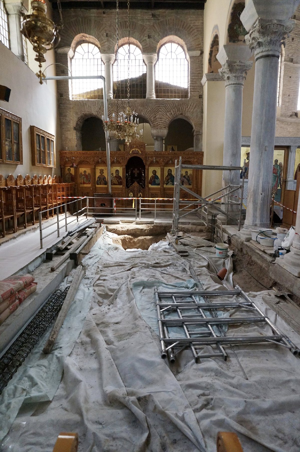 "Onun olduğu yerde 1970'lerde atılan şap zemin döşemesi kaldırılınca 'Altında ne var?' diye bir kazı çalışması yapıldı. Neticede erken döneme ait kilisenin 4'üncü yüzyıla ait bir zemin döşemesi ortaya çıktı. Şu anki kilise ise daha geç tarihli. Erken dönem yapısının çeşitli yerlerinde mimari birtakım izleri var ama döşeme anlamında izi yoktu. Bu ortaya çıkan, belki daha erken tarihli bir döşeme. Kazıyı yapan arkadaşlarımız bunun yayınını hazırlıyor. Aslında yaşadığı dönemin zemini burası ve kuvvetle muhtemel Aziz Nikolaos'un ayağının bastığı zemin döşemesinden bahsediyoruz. Bu son derece önemli bir keşif, o döneme ait ilk bulgu. Bunun üzeri belirli bir teknikle kapatılacak ve sergilemeye hazır hale getirilecek."