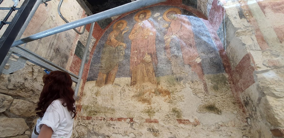 "Bu esnada kilisede bir tahribat olmuş. Yani Aziz Nikolaos'un muhtemelen kabri açılmış, kemikleri alınmış ve bugün ona ait olduğu söylenen lahit şapel de yan tarafında bir nişin içerisine yerleştirilmiş. Bu lahdin özgün yeri bana göre orası değil açıkçası. Muhtemelen lahit başka bir yerde bulunuyordu. Bu da kilisenin içerisinde özel bir yer olmalıydı. Şapelin içerisindeki en özel yer ise şapelin kubbeyle örtülü üç apsisli bir bölümü var, orası olduğunu düşünüyorum, ortadaki kısım. Ve apsisin cephesinde de son restorasyon çalışmalarında çıktı, bir pantokrator İsa (Hz. İsa'nın sol elinde Kitâb-ı Mukaddes tutarken sağ eliyle takdis işareti yapar halde tasvir edildiği sahne) freski tespit edildi. Bu da yeni çıktı. Dolayısıyla bu da buranın özel bir yer olduğunu gösteriyor."