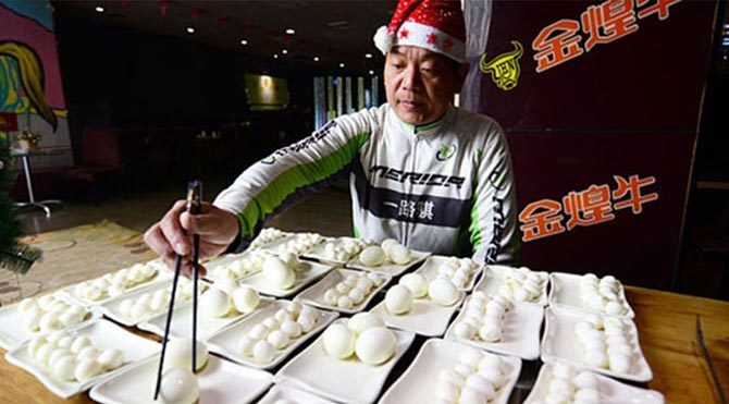46 yaşındaki Yizhong, 40 dakikadan daha az bir sürede 150’si bıldırcın, 10’u tavuk yumurtası olmak üzere 160 yumurta yiyerek şaşkınlık yarattı.Telegraph’ta yer alan habere göre, “iyi olduğunu” açıklayan Yizhong, ilerleyen zamanlarda benzer aktiviteleri yapmaya devam edeceğini belirtti. Yizhong, “160’a ulaştığımda yumurtaların tadından sıkılmaya başlamıştım, dolayısıyla durdum; doyduğum için değil. Daha önce bu kadar çok yumurta yemeyi denememiştim, hala da limitime ulaştığımı hissetmiyorum” sözleriyle yaşadıklarını anlattı.