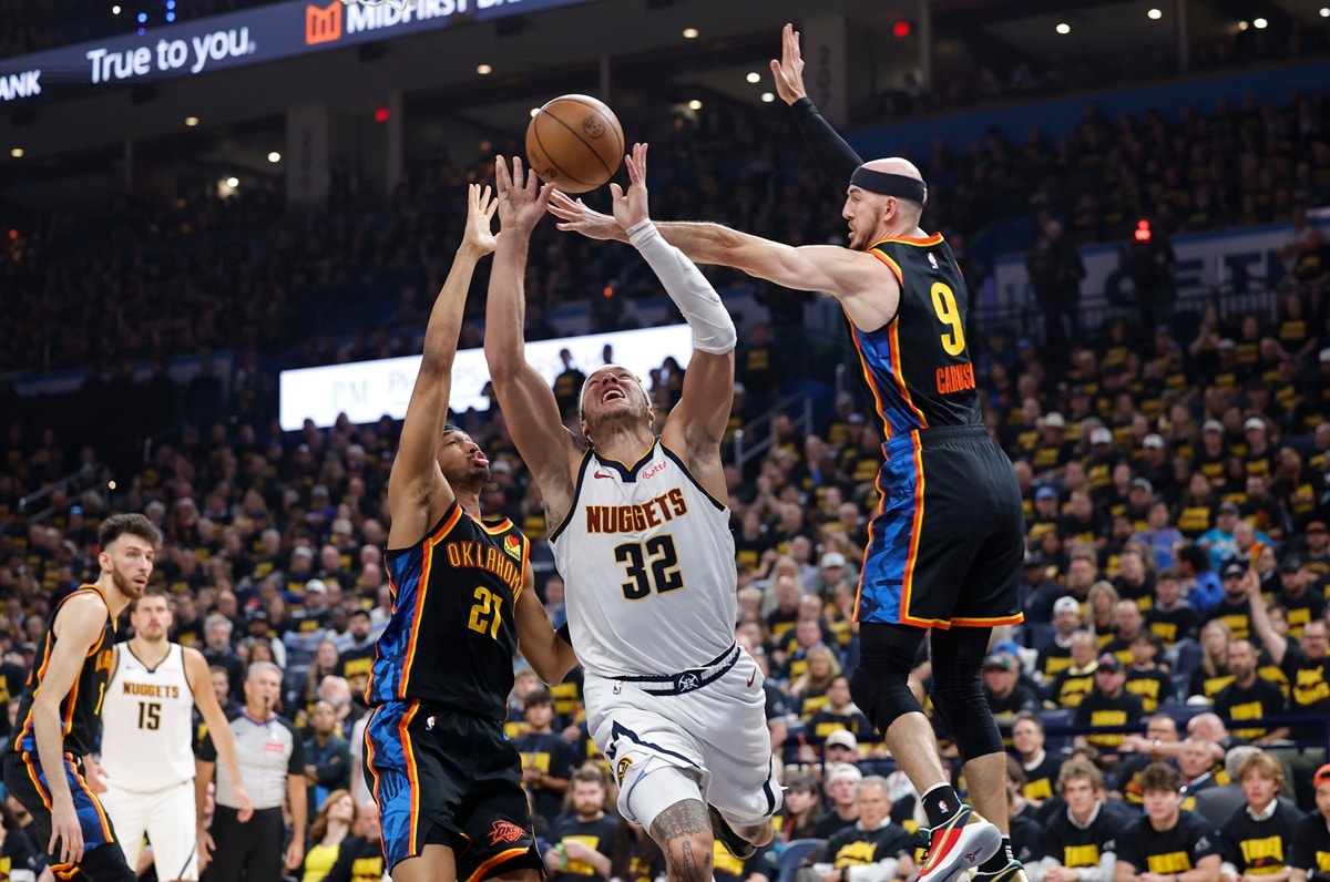 NBA play-off'larına 2 maçla devam edildi. Batı Konferansı'nın yarı final serisi üçüncü maçında Thunder'i Ball Arena'da konuk eden Nuggets, müsabakayı 9 sayı farkla kazandı. Nuggets'ta Jamal Murray 27 sayı, Nikola Jokic de 20 sayı ve 16 ribauntla galibiyette önemli rol oynarken, Aaron Gordon 22, Michael Porter ise 21 sayıyla oynadı. Thunder'da ise Jalen Williams 32 sayı, Chet Holmgren 18 sayı ve 16 ribaunt, Shai Gilgeous-Alexander 18 sayı ve 13 ribauntla öne çıktı.