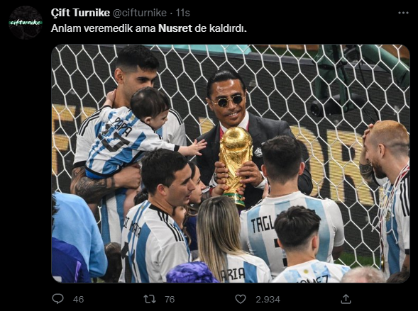 Öte yandan, Nusret'in saha içine girerek kutlamalara katılması yurt dışı basınında da yer aldı. Sosyal medya kullanıcıları, Nusret'in kutlamalara dahil olmasına anlam veremezken, olayla ilgili şu paylaşımlar yapıldı: