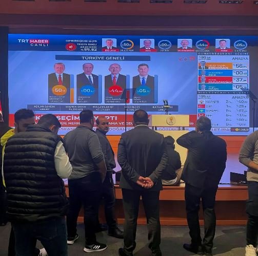 Muhabir, "Birkaç dakika önce Erdoğan'ın oy oranı yüzde 50'nin altına inince salonda bir an gürültü oldu. Ve daha sonra iç çekme sesleri geldi" dedi.