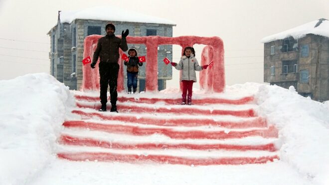 Yüksekova ilçesine bağlı Yeni Mahalle'de inşaat işçisi Mehmet Şerif Karahan, geçen yıl Anıtkabir'e götüremediği kızı Hira için sıcaklığın eksi 20 derecelere kadar düştüğü havada 10 gün çalışarak kardan Anıtkabir yaptı.