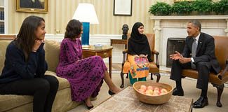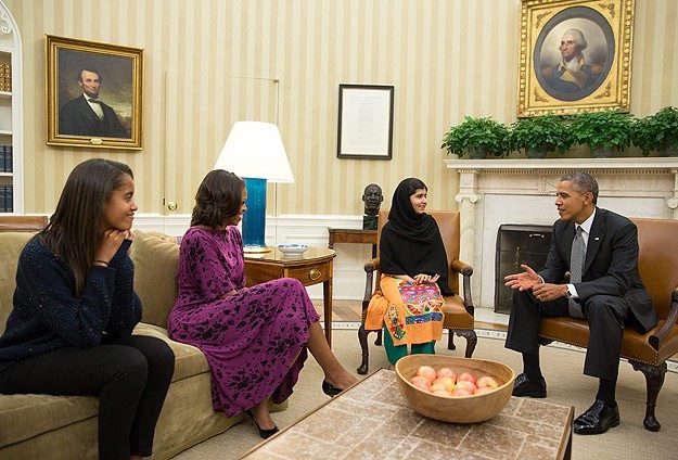 Beyaz Saray’dan yapılan açıklamada, Başkan Obama ve eşinin, görüşmede Malala’yı ülkesinde kız çocukların da eğitim görmesi için verdiği ihlam vereci ve tutkulu çalışmasından dolayı teşekkür ettiği kaydedildi. Kız çocukların okula gitmesini ve rüyalarını gerçekleştiremesini teşvik edeci ceraset ve azminden dolayı Malala’yı kutlayan dünya üzerinde birçok millete ABD'lilerin de katıldığı vurgulanan açıklamada, Michelle Obama’nın kız çocukların eğitiminin önemine işaret ettiği ve onların eğitimine yapılacak yatırımın hem kendi kızları ve torunları için hem de onların ailesi, toplumları ve ülkeleri için en iyi yatırım olduğunu kaydettiği belirtildi. Açıklamada ayrıca Obama’nın Dünya Kız Çocukları Günü dolayısıyla yayımladığı mesajında yer alan “Kendi kaderlerini seçecek şansı verdiğimiz takdirde, birgün dünya üzerinde uluslara öncülük edecek kızlar var.