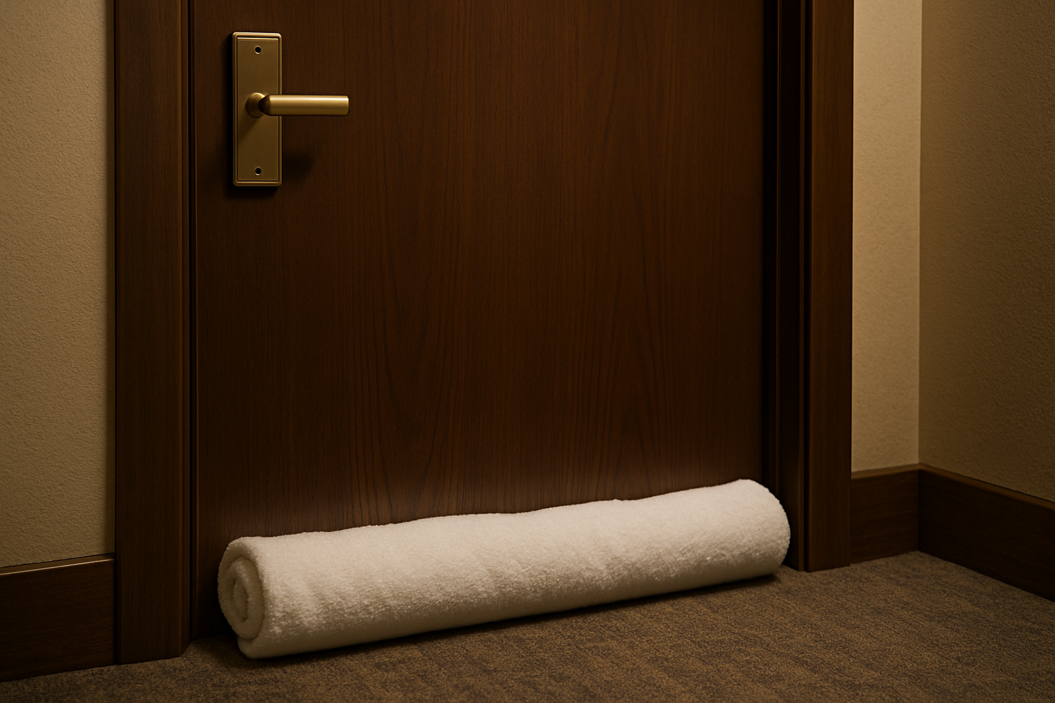 Otel kapılarının altında genellikle boşluk bulunur. Bu boşluktan sızan koridor ışığı, özellikle uykuya hassas olan kişiler için büyük rahatsızlık yaratabilir. Aynı şekilde, diğer misafirlerin konuşmaları ya da ayak sesleri de odaya kolayca girebilir. Kapının altına havlu sıkıştırmak, hem ışığı hem de sesin etkisini büyük ölçüde azaltarak daha kaliteli bir uyku sağlar.