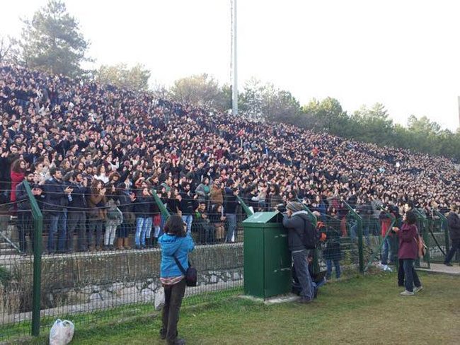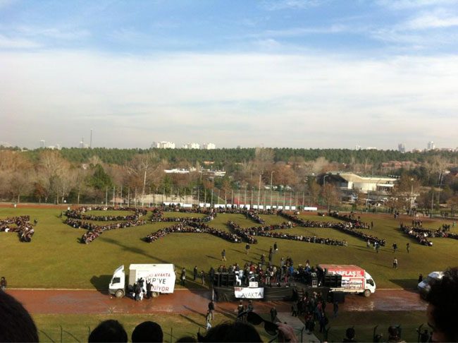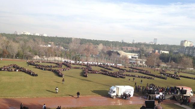 Yürüyüşün ardından konserlerin yapılacağı stadyuma gelen yüzlerce öğrenci, saha içinde birbirlerine kenetlenerek 'ODTÜ Ayakta' yazısını oluşturdu.