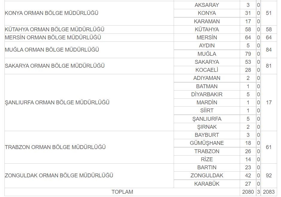 12. Adaylardan istenecek evraklar, evrak teslim tarihleri, sınav yeri, sınav tarihi ve İşe alım süreci ile ilgili tüm bilgilendirmeler Orman Bölge Müdürlükleri internet siteleri üzerinden ilan edilecektir.