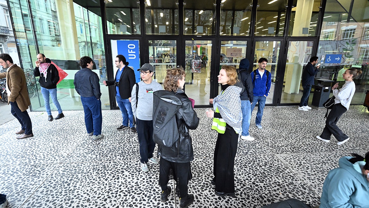 Belçika'da öğrenciler, ülkenin önde gelen akademik kurumlarından Gent Üniversitesi kampüsünde, öğrenci işleri ile birçok bölümün ortak ders aldığı en büyük amfileri içeren binanın giriş katında 3 günlük eylem başlattı.