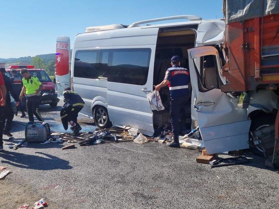 Öğrenci servisi TIR'a çarptı: 1'i ağır 13 yaralı