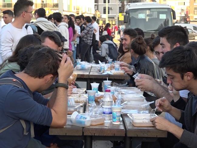 Bir başka üniversite öğrencisi ise "Akşam yemeğinde, 30- 40 liraya yemek yiyeceğimize gelip burada yiyoruz. Aya vurduğumuzda 1200 lira yapıyor. 1200 lira cebimizde kalıyor. Araçların okulun içine alınmaması üzücü bir durum. Geçen yıl okulda dağıtılıyordu bu yıl dağıtılmıyor. Sebebini bilmiyoruz, ama okul içinde dağıtılması bence de iyi olurdu. Umarım tekrar içeride dağıtılmaya başlanır" dedi.