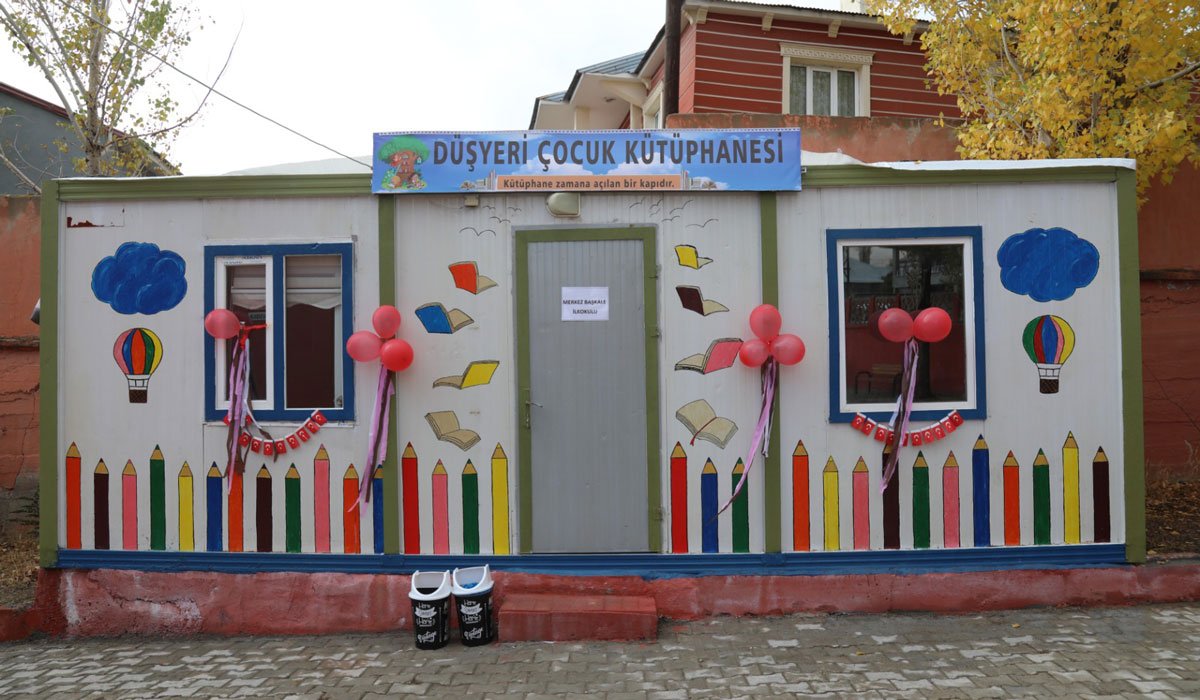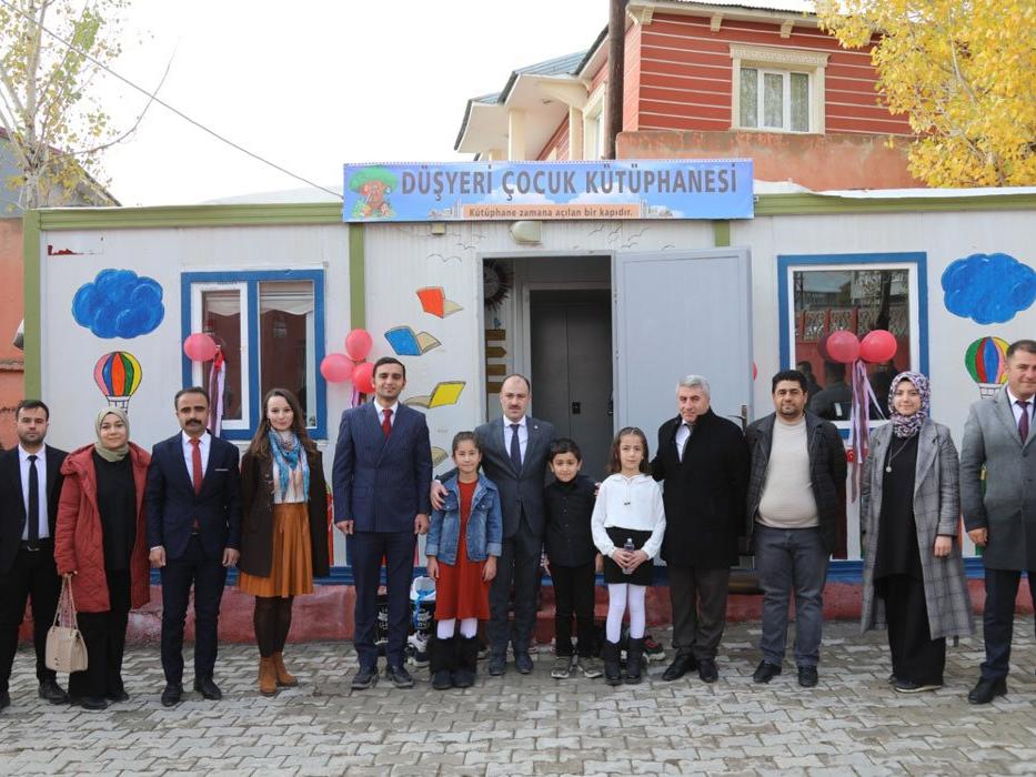 Kaymakamlık, Milli Eğitim Müdürlüğü ve Okul Aile Birliği'nden kitap, raf, halı, koltuk desteği alınarak geri dönüşüme kazandırılan konteyner kütüphaneye de 'Düşyeri Çocuk Kütüphanesi' adını verdi.