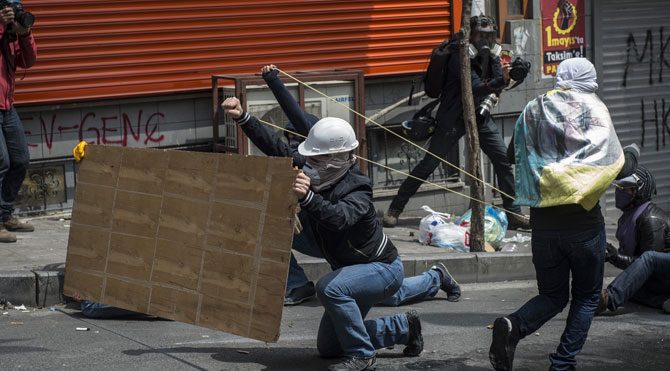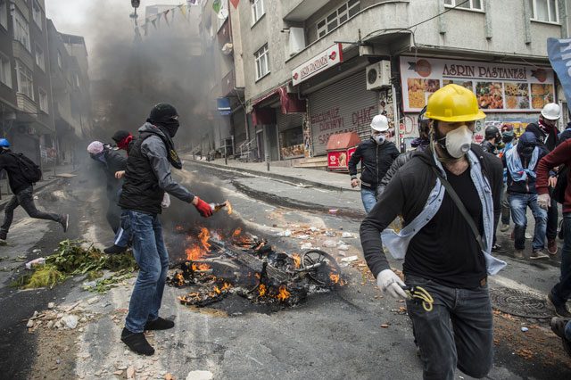 Okmeydanı Piyalepaşa Caddesi'nde saat 11.30 sıralarında toplanan bir grup polis ekiplerinin dağılın uyarılarına rağmen dağılmayarak, polise havai fişek attı. Bunun üzerine polis ekipleri gruba biber gazı ve TOMA ile tazyikli su sıkılarak müdahale etti. Müdahale sonrası gruplar ara sokaklara dağıldı. Bir süre sonra Kuruçay sokakta yüzleri maskeli gruplar yeniden toplandı.