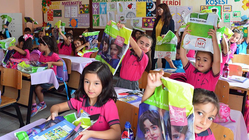 2017-2018 Eğitim Öğretim Yılı başında öğrenciler kitaplarını bu şekilde almıştı. Yeni eğitim yılında da, 21 Eylül'de okullarda yüz yüze eğitime başlayacak öğrenciler ders kitaplarına kavuşacak. Foto: DepoPhotosDERS KİTAPLARI DAĞITIMI NASIL OLACAK?