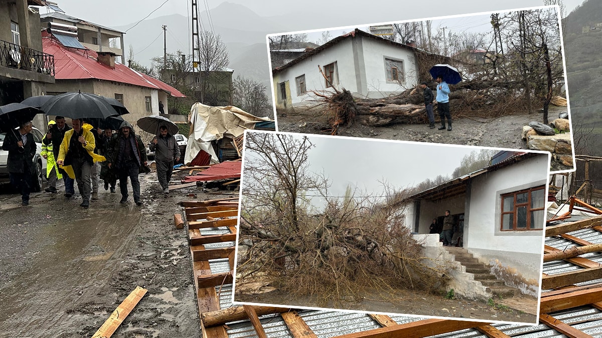 Şemdinli Kaymakamı Yunus Emre Akpınar ise, şiddetli rüzgarın çatılara zarar verdiği Tekeli köyü ve Balıklı mezrasını ziyaret etti.