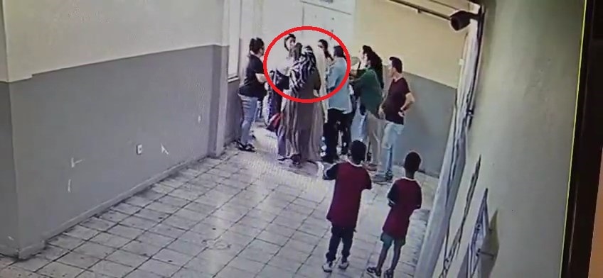 Saldırı anı, okulun güvenlik kamerasına yansıdı. Tehditler aldığı iddia edilen öğretmen, okula gitmekten çekinirken, şikayeti üzerine veli gözaltına alındı.