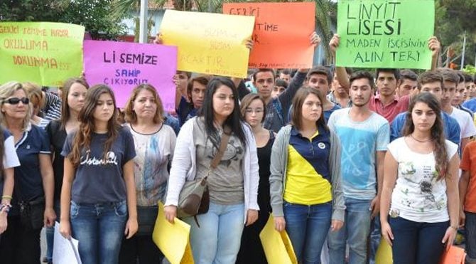 Kalabalık, bir süre oturma eylemi yapıp, "Sesimizi duyun, Linyit Anadolu Lisemize anılarımıza ve tarihimize dokunmayın", "Lisemize dokunma, Mahmut Hoca'lık yaptırma", "Geçici eğitime hayır", "Okuluma dokunma" yazılı dövjzler taşıyıp, sloganlar attıktan sonra sessizce dağıldı.