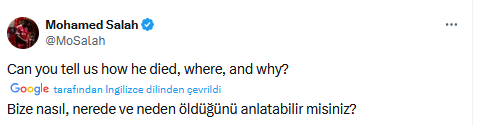 Mohamed Salah, UEFA'ya sosyal medya üzerinden soru yönlendirirken "Bize nasıl, nerede ve neden öldüğünü anlatabilir misiniz?" ifadelerine yer verdi. Bu paylaşım yıldız ismin takipçileri tarafından yoğun ilgi gördü.