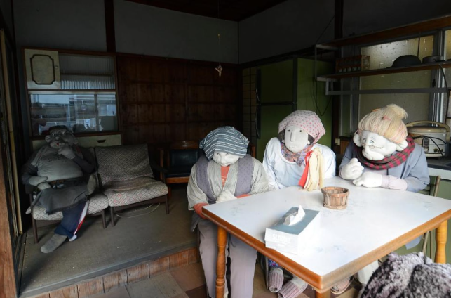 Köyün okuluna girdiğinizde en sarsıcı manzarayla karşılaşıyorsunuz. Okul, öğrenci yokluğu nedeniyle yıllar önce kapatılmış. Ancak sınıflara girdiğinizde; sıralarda oturan, tahtaya bakan ve koridorlarda koşturan düzinelerce çocuk bebek görüyorsunuz. Bu manzara, ziyaretçilere sanki zaman 1950’lerde donmuş gibi hissettiriyor.