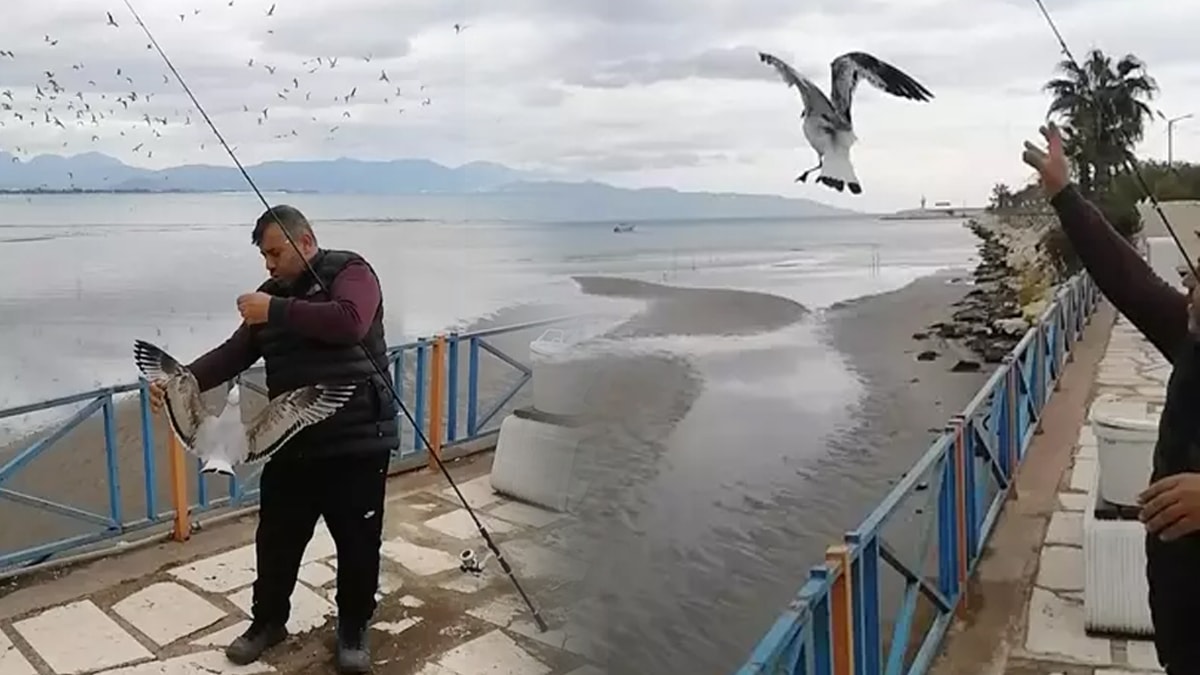 Finike ilçe merkezinin liman bölgesindeki mendirekte balık avlamak isteyen Selçuk Çele, dün saat 14.00 sıralarında oltasını denize attı. Bu sırada su yüzeyinde bulunan martılardan biri, Selçuk Çele'nin olta iğnesine takıldı.