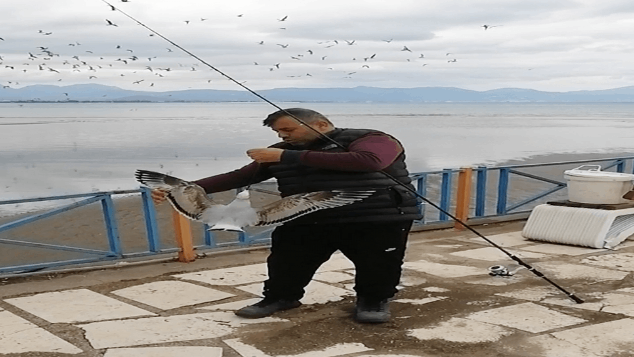 Görüntülerde denize attığı oltasıyla martı yakaladığını gören Selçuk Çele'nin gülerek, "Martı yakaladım. Bu akşam martı pilav yiyeceğiz" dediği duyuldu. "Ben mi sana 'yakalan' dedim. Yapacak bir şey yok. Dur kurtaracağım" diyerek martıyı kıyıya çeken Selçuk Çele'nin, hayvanı gagasına takılan iğneden kurtardığı görüldü. Kendisini ısırmaya çalışan martıya, "Isır bakalım, için soğudu mu" diyen Selçuk Çele'nin birkaç kez elini ısıran hayvanı daha sonra bıraktığı anlar, görüntülerde yer aldı.
